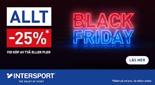 Passa på att handla julklapparna hos INTERSPORT under Black Friday. Spana in årets bästa erbjudanden: sportiga klipp, pulshöjande deals och riktigt pressade priser. Ett perfekt tillfälle att hitta fantastiska erbjudanden på sportiga klappar till nära och kära! Det här vill du inte missa! Gäller för dig som är eller blir medlem i Club INTERSPORT. Kom ihåg att logga in för att ta del av Cluberbjudanden online. Se villkor på intersport.se. Gäller t.o.m. måndag 2/12 kl. 23.59.